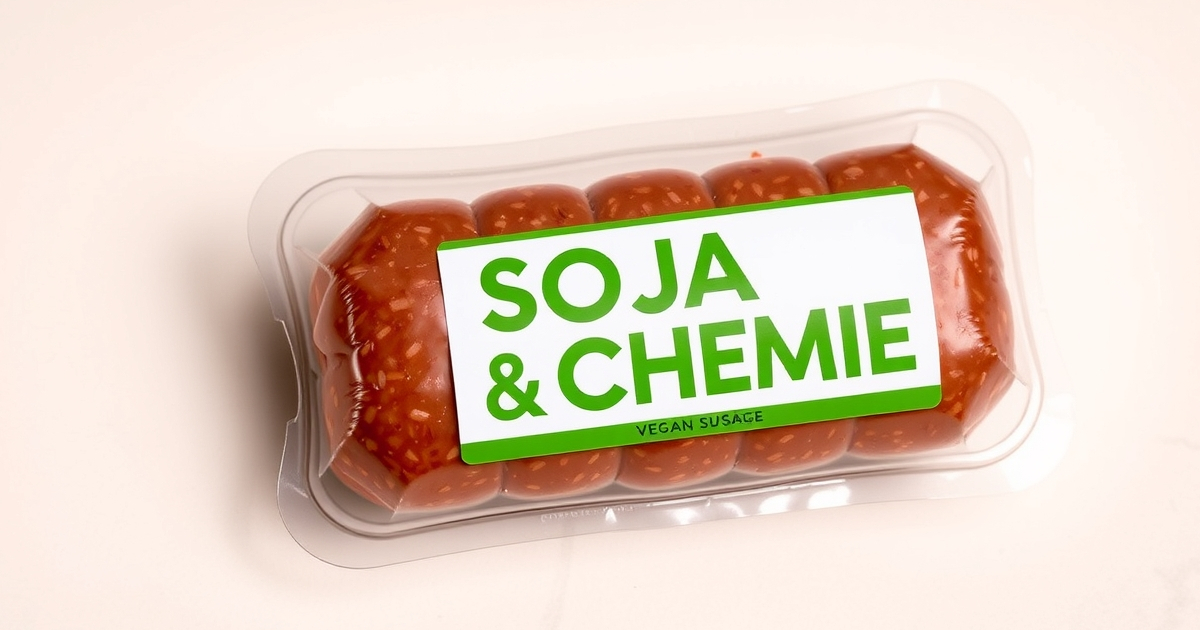Soja & Chemie, die Laboranten der Firma ÖkoChem nennen ihr Produkt jetzt beim Namen. „Im Kern besteht meine Wurst aus reinem Bio-Soja“, erklärt uns der CEO Paul Polymer. „Aber Soja sieht nicht aus wie eine Wurst und schmeckt auch nicht so. Deshalb kommt bei unseren Produkten die ganze Schöpfungskraft der Lebensmittelchemie zum Einsatz. Für die gute Struktur des Produkts sorgen Methylcellulose, Carrageen und Guarkernmehl. Für die Farbe und das Aroma sind Glutaminsäure, Umami-Enhancer und Häm-Moleküle verantwortlich. Das Ganze wird dann durch Stabilisatoren zusammengehalten: Ascorbinsäure, Tocopherole, Natriumacetat. Und dann mischen wir noch etwas Mikroplastik und ein paar Mehlwürmer in den Cocktail. Einfach so, weil wir es können.“